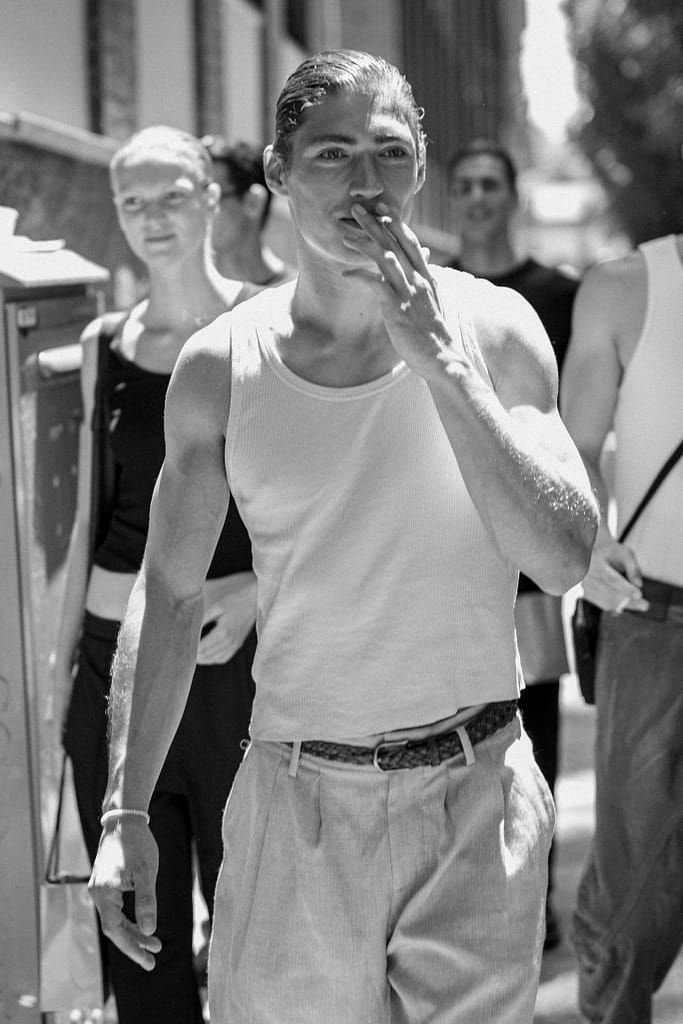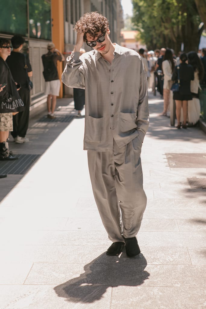 This street style gallery presents the most compelling fashion moments from Giorgio Armani’s Spring/Summer 2026 menswear collection during Milan Fashion Week 2025. As a professional street style photographer in Milan, I documented the sophisticated sartorial choices of fashion week attendees outside this legendary Italian fashion house’s presentation.